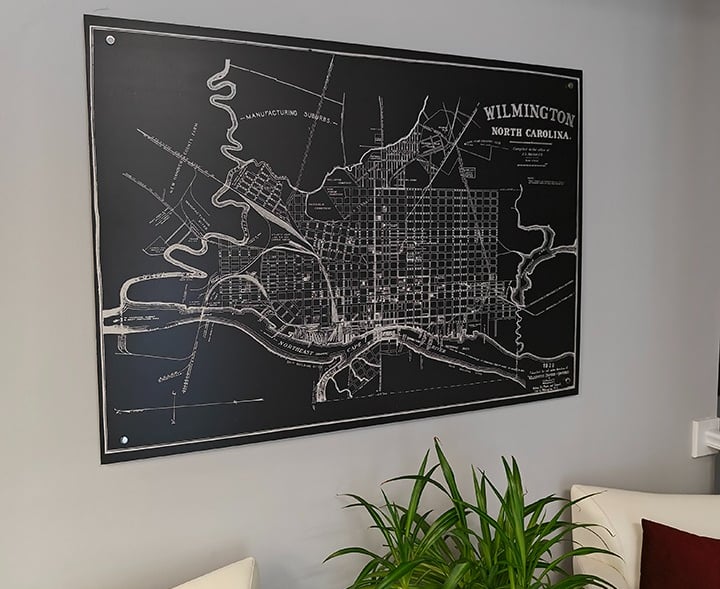 We’ll work with your logo, messaging and space to create a sign concept that fits your brand and location (historic downtown Wilmington, Mayfaire, etc).